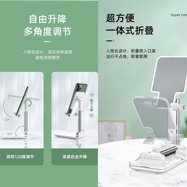 다기능 접이식 리프팅 레이지 스탠드 데스크탑 휴대폰 홀더 휴대용 보관함 흰색