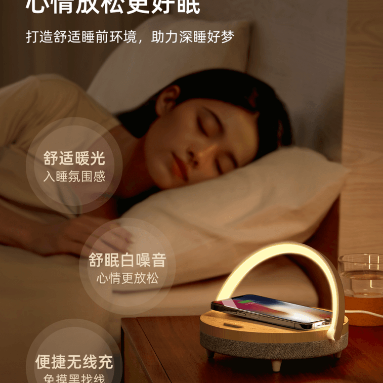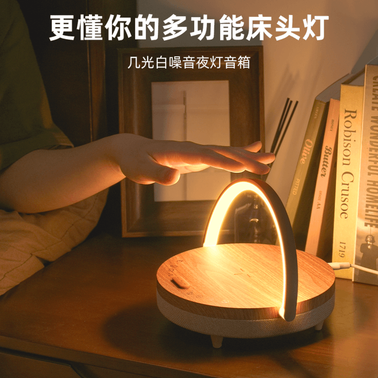 [중국 직배송] Jiguang 음악 책상 램프, 블루투스 스피커, 무선 충전, 앰비언트 침대 옆 램프, 야간 조명, 여자친구 생일 선물, 로맨스 선물 [화이트 노이즈 버전] 클라우드 샌드 컬러, 원피스