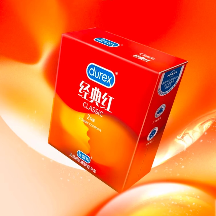DUREX 천연 라텍스 고무 콘돔, 클래식 레드, 2개입