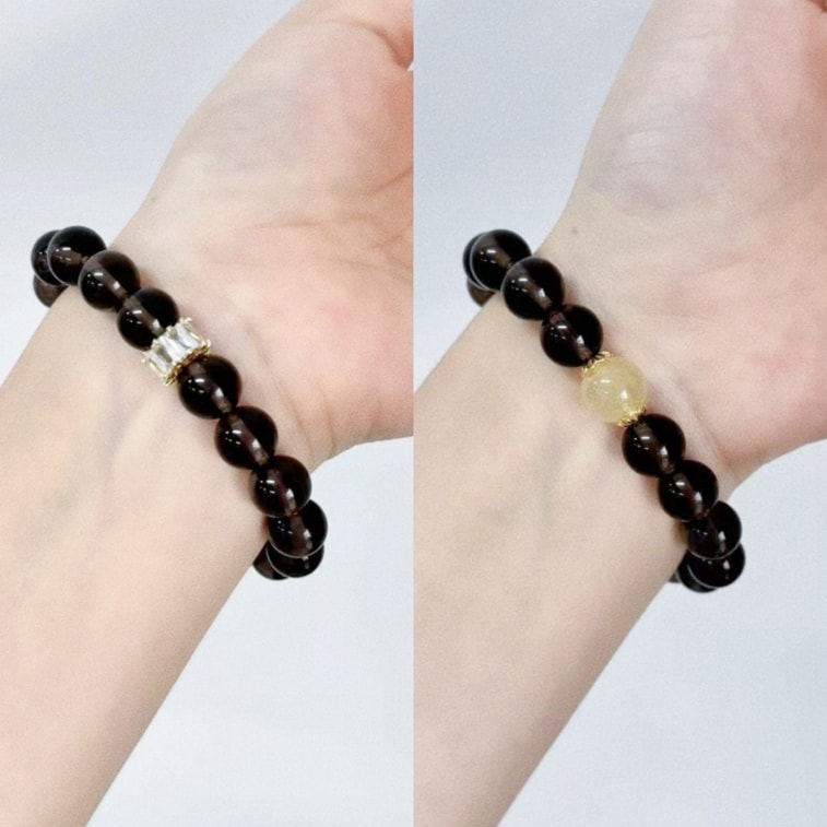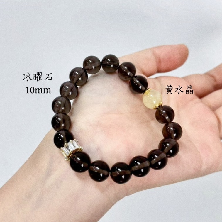[수면 보조 및 꿈 개선] 10mm 천연 스모키 쿼츠 크랙 팔찌, 불면증 완화 크리스탈, 스모키 쿼츠 힐링 팔찌, 남녀공용, 천연 크리스탈 건강 주얼리, 에너지 힐링 스톤, 수면 개선 주얼리