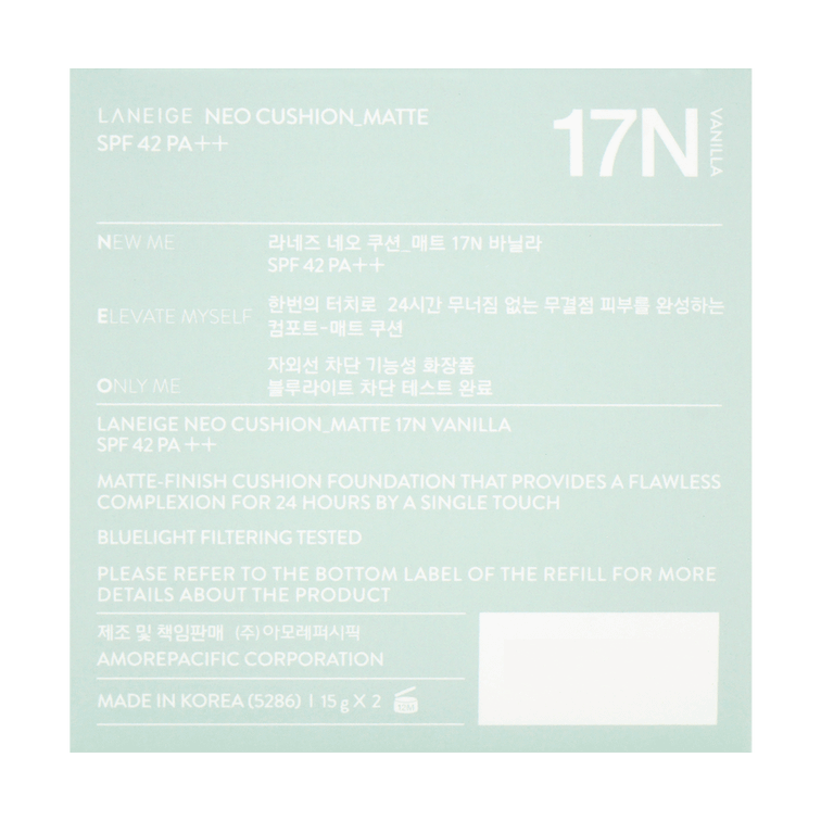 네오 쿠션 매트 파운데이션 SPF42 PA++ 17N 베이지15g*2 리필 포함