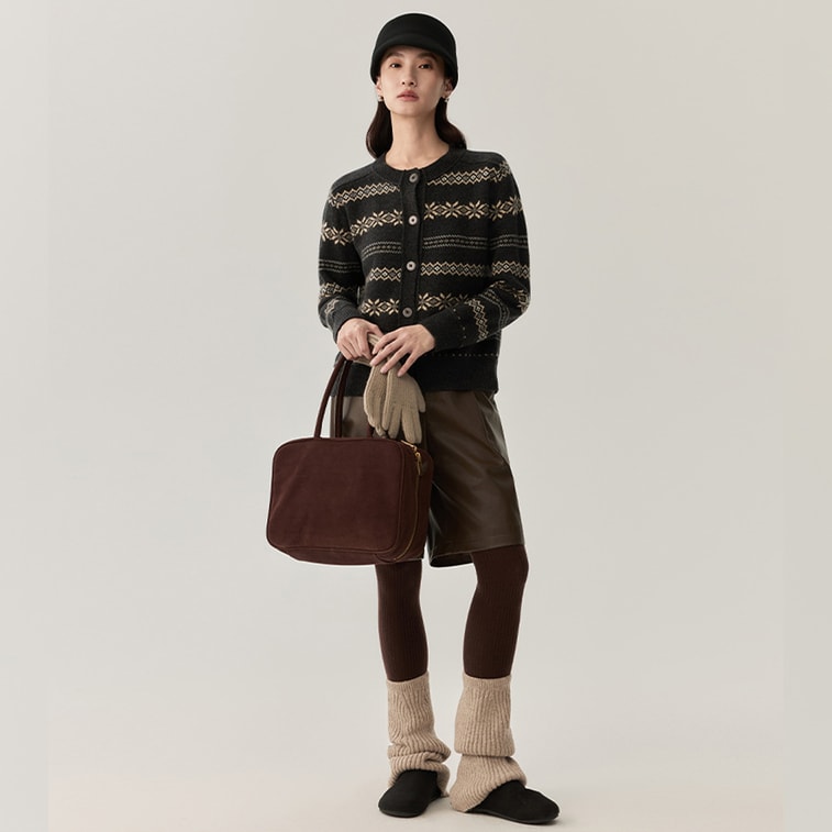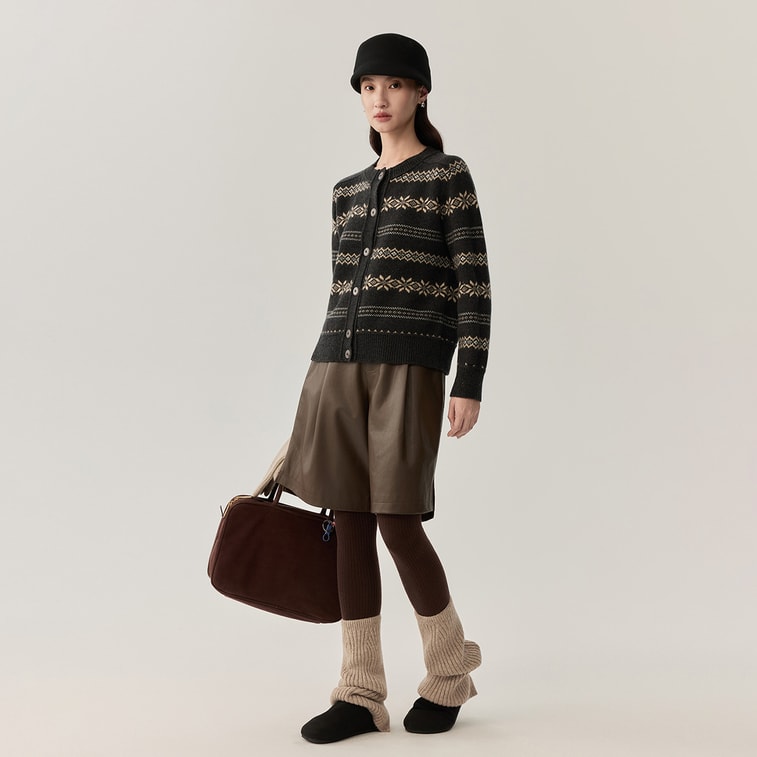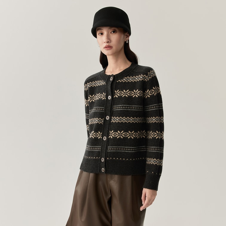 [중국 직배송] HSPM 신상 레트로 라운드넥 스트라이프 두툼하고 따뜻한 울 니트 스웨터, 차콜 그레이, 사이즈 M