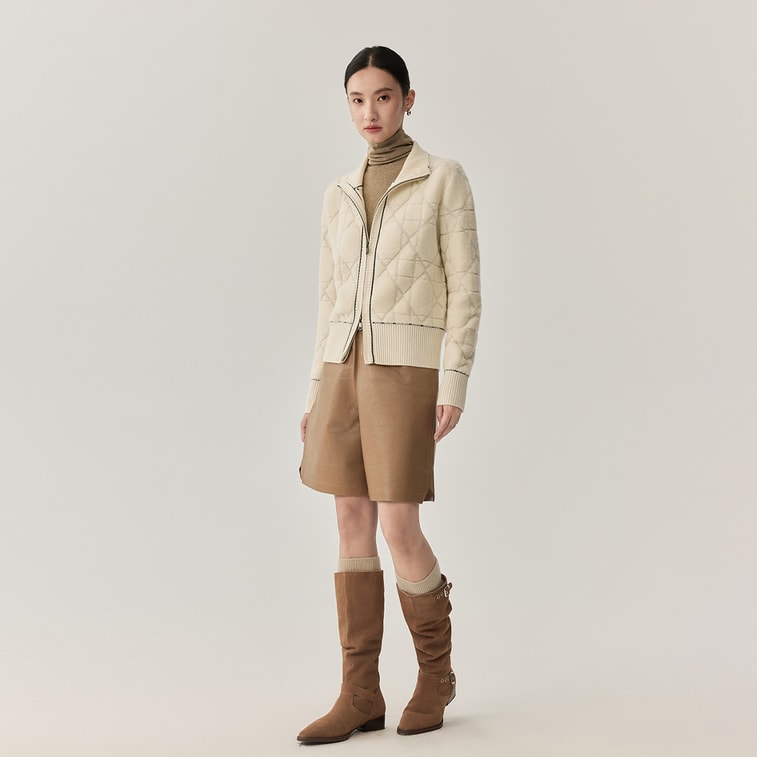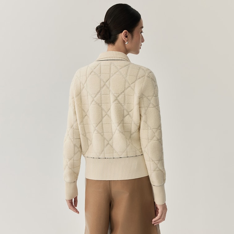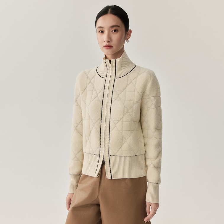 [중국 직배송] HSPM 신상품 양모 다이아몬드 패턴 체인 스웨터, 도톰하고 슬림핏, 우아하고 몸매를 돋보이게 하는 니트웨어, 화이트, 사이즈 M