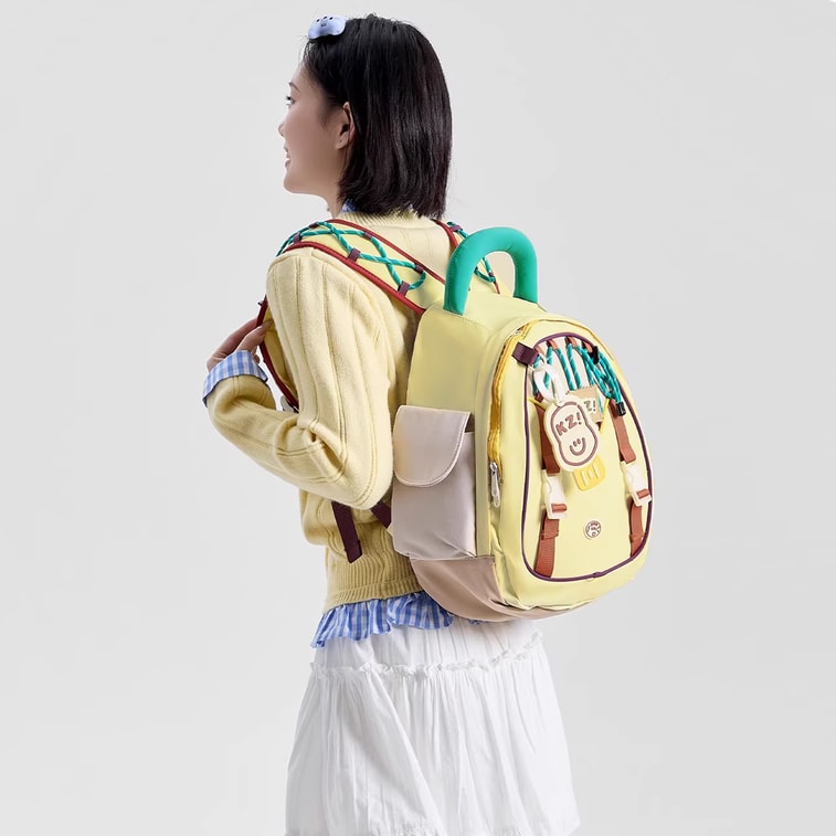 【중국 직송】 HSPM 신형 대학용 백팩 노란색 + 펜던트 플라스틱 라벨 F