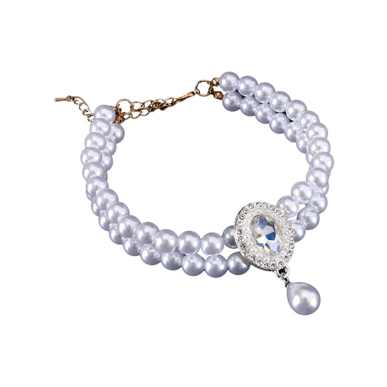 【중국 직송】 HSPM 신제품 더블 펄 펫 라이트 럭셔리 노블 익스퀴지트 목걸이 더블 펄 젬 화이트 XS