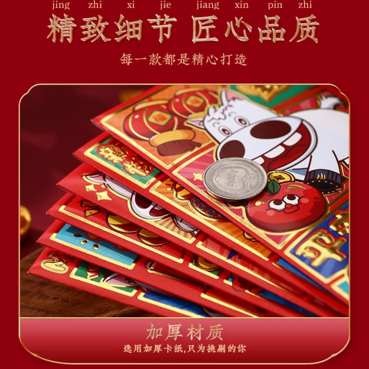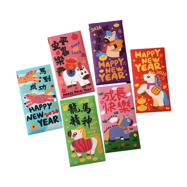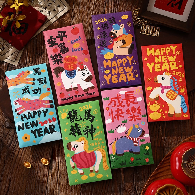 [중국 직배송] 여우꼬리 새해 깜빡이는 만화 빨간 봉투 - 길조와 번영을 기원하는 중국 설날 띠별 행운의 돈 봉투, 2026년, 긴 스타일 - B형 (6개입)