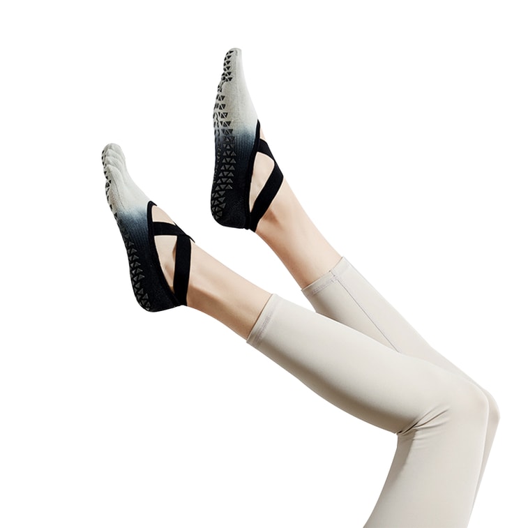 New Gradient Strap Anti Slip Five Finger Sports Yoga Socks Black And White M