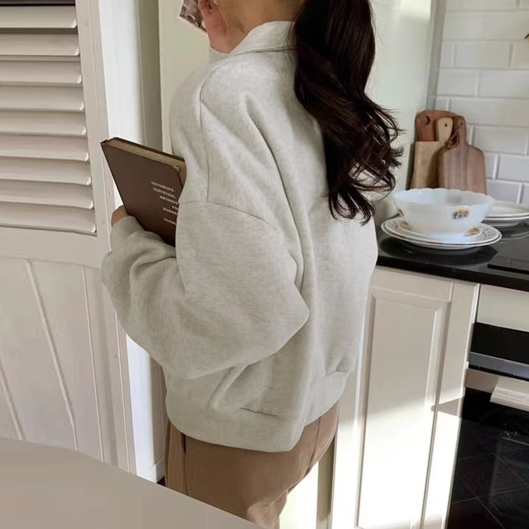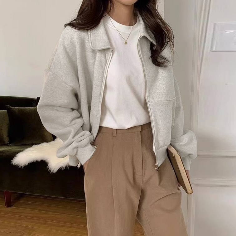 [중국에서 다이렉트 메일] HSPM 새로운 루즈한 더블 엔드 지퍼 연령 감소 라펠 가디건 스웨터 재킷 화이트 그레이 M