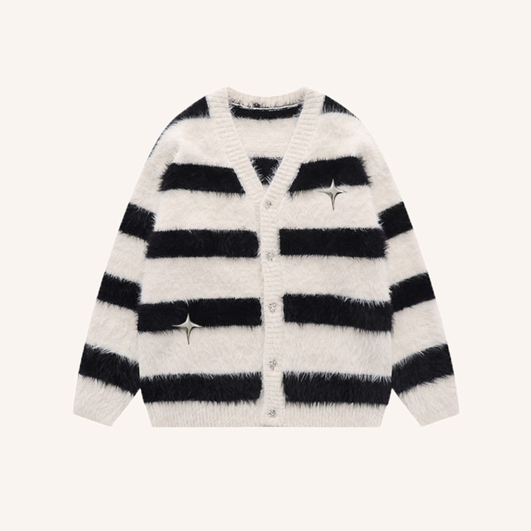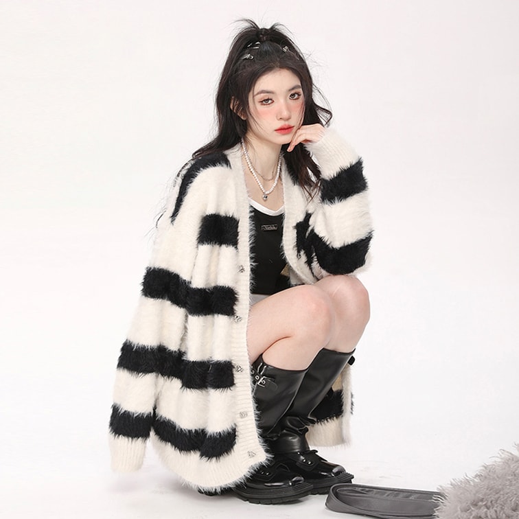 [중국에서 다이렉트 메일] HSPM 신상 모조 밍크 퍼 루즈한 배색 스트라이프 자켓 흑백 스트라이프 M