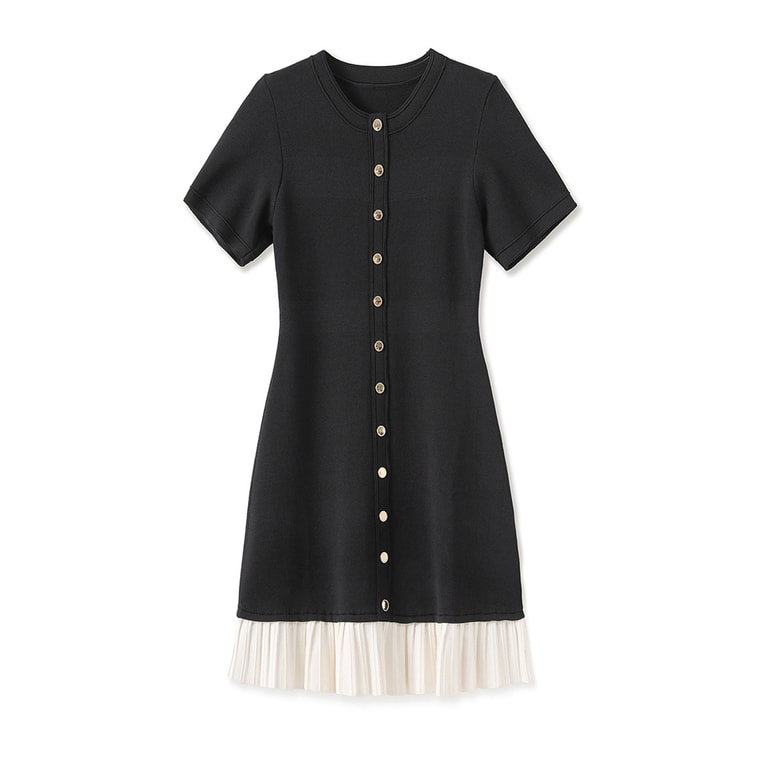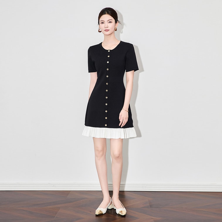 [중국 직배송] HSPM 신상품 플리츠 반팔 샤넬 스타일 니트 드레스 블랙 M