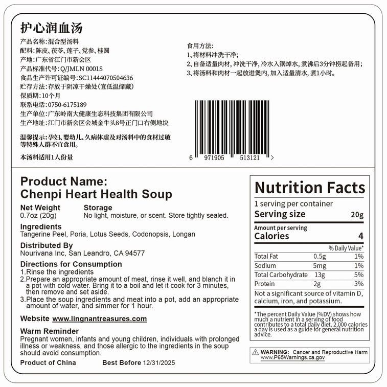 링난 진보 심혈 보호탕 귤껍질 건강 관리 심혈 보습 편리 인기 선물 20g