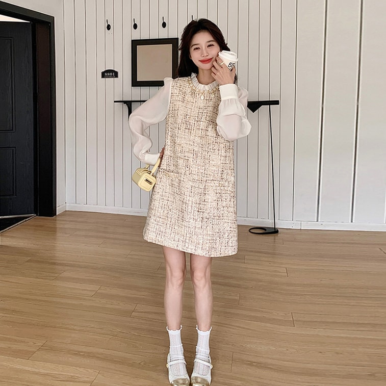[중국발 다이렉트 메일] HSPM 뉴스타일 스몰 프래그런스 스플라이스 프렌치 드레스 오프화이트 L