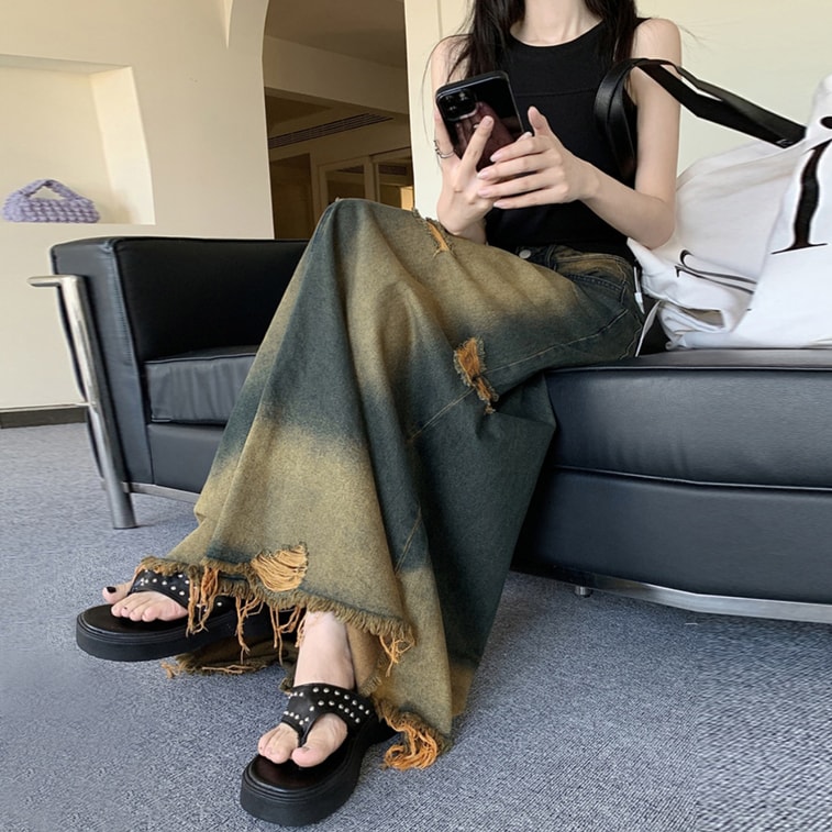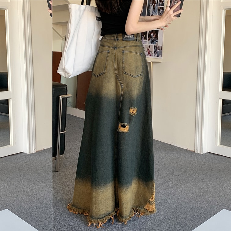 [중국 직배송] HSPM 뉴 템퍼러먼트 로우 엣지 리핑 데님 스커트 데님 컬러 M