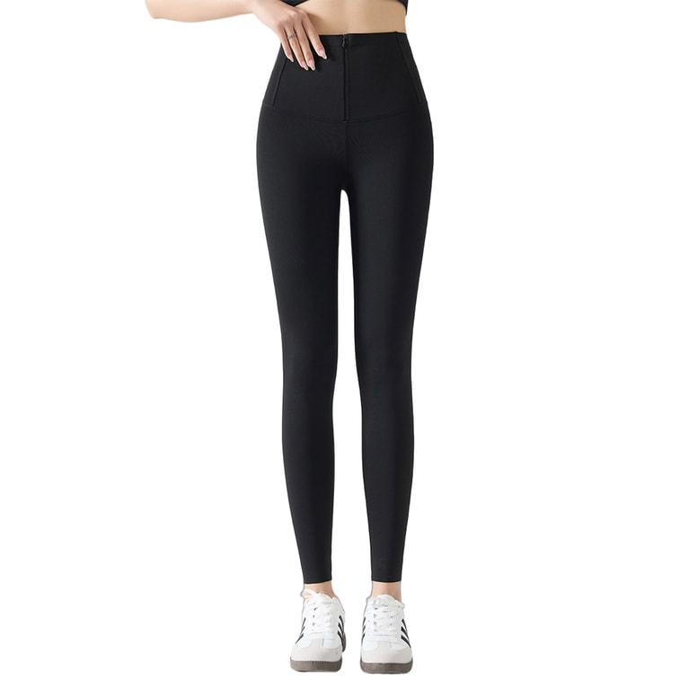 [중국 직배송] HSPM 신형 슬리밍 및 복부 보정 요가 바비 팬츠 (지퍼 및 샤크스킨 소재) - 블랙 - 사이즈 S