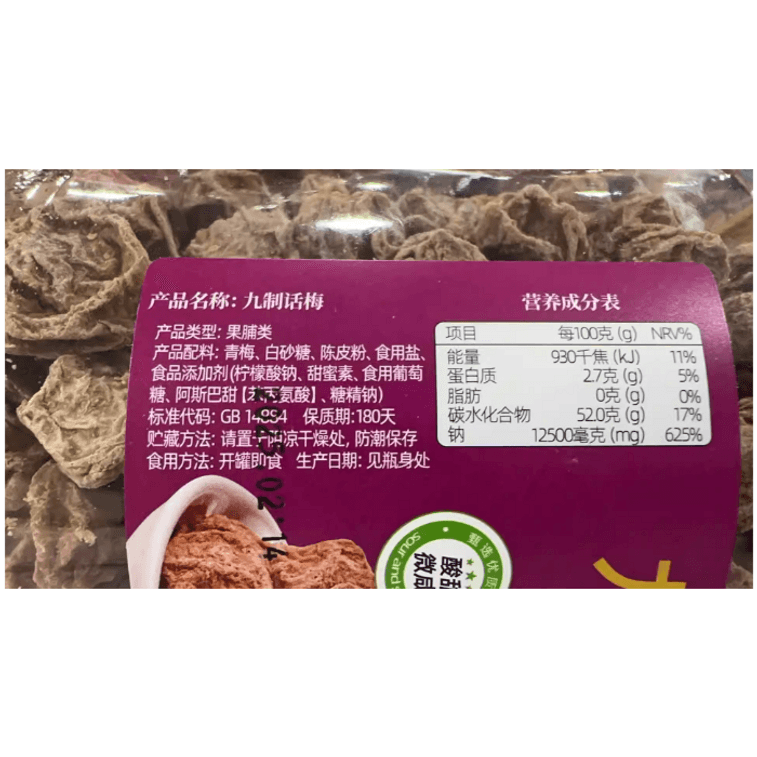 [중국 직배송] 산웨이칭 9중 절임 건매실, 새콤달콤한 통조림 매실, 물에 우려 마시기 좋은 매실, 임산부 간식, 건과일, 절인 과일, 설탕에 절인 매실 과육, 250g*1캔