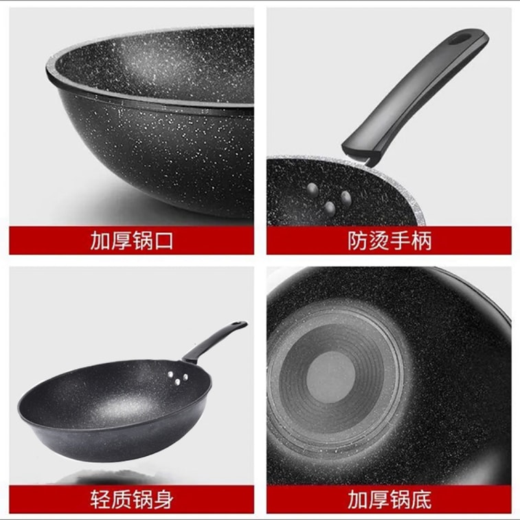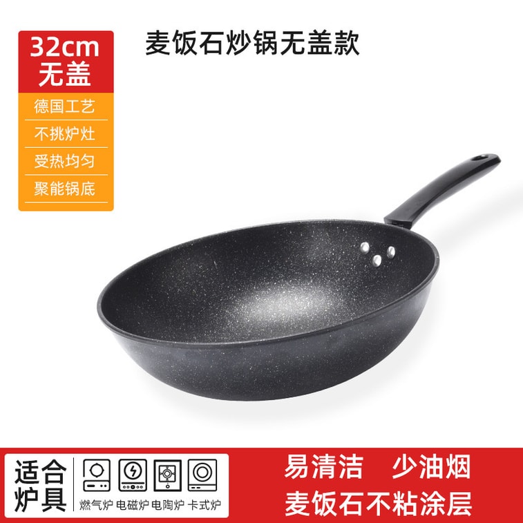 Non-stick 32cm Chinese Wok【Easy To Clean Light Fume】 Frying Pan #No Lid - Induction Cooker - Gas Stove Works