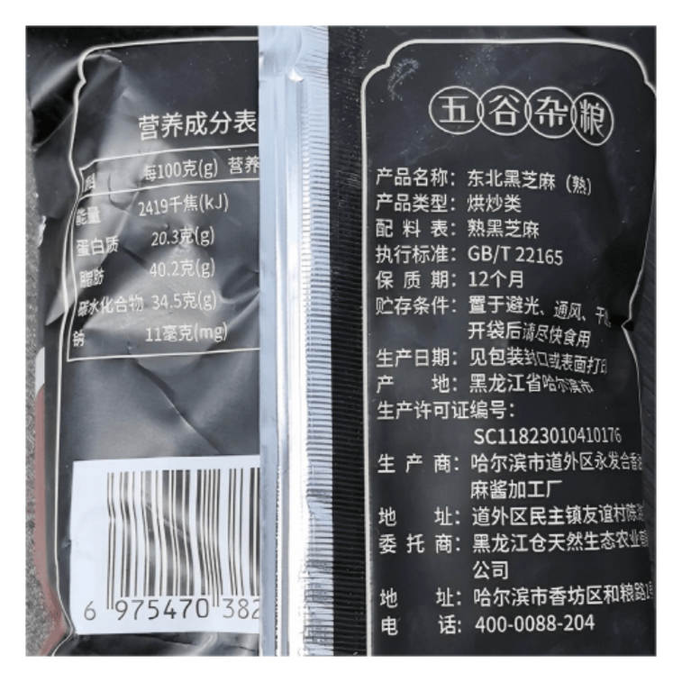 Northeast Simple Roasted Black Sesame Seeds, No Washing Required, Ready to Eat, Fresh Farm Product, Roasted Sesame 100g*1 Bag