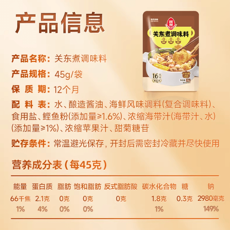 [중국 직배송] 연근오뎅 육수 베이스, 감칠맛과 향긋함, 오래도록 남는 여운, 무지방, 무설탕, 훠궈 베이스, 일본식 육수 베이스, 45g