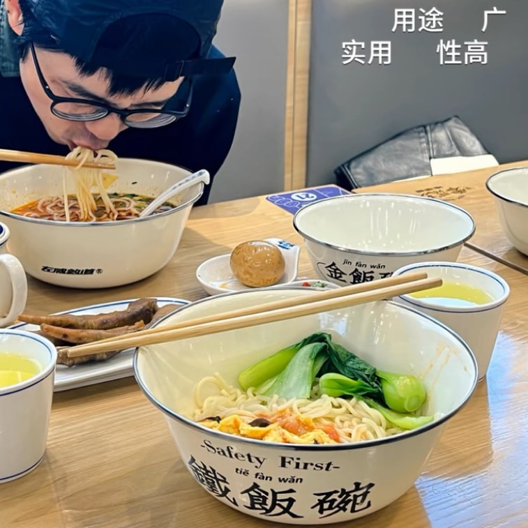 One Popular Large Enamel Bowl Of RamenSoupand Rice