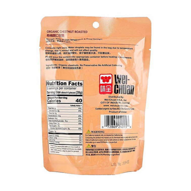 유기농 구운 밤, 5.3온스【USDA 인증】