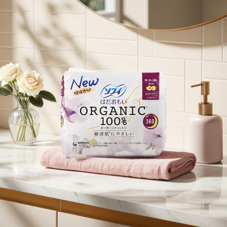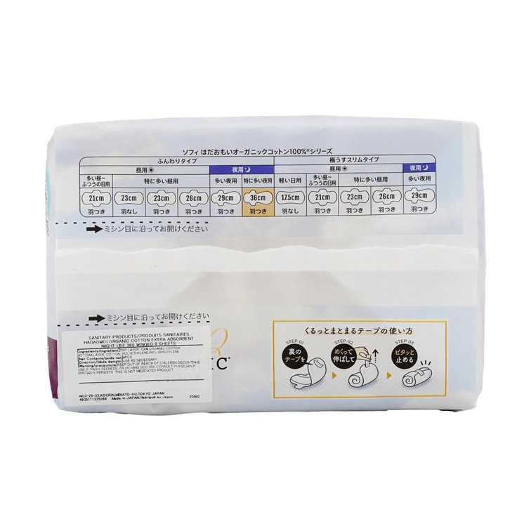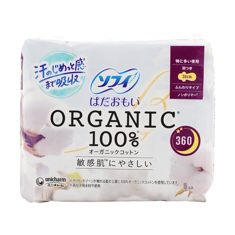 SOFY 젠틀스킨 순면 오가닉 코튼 생리대, 날개형 야간용, 36cm, 8p
