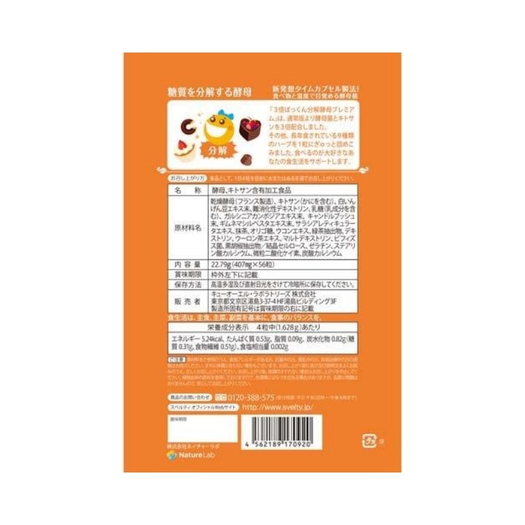 [일본 직배송] SVELTY 당분해효소, 효모 키토산 열조절 정제 3배 농축형, 고강도, 56정