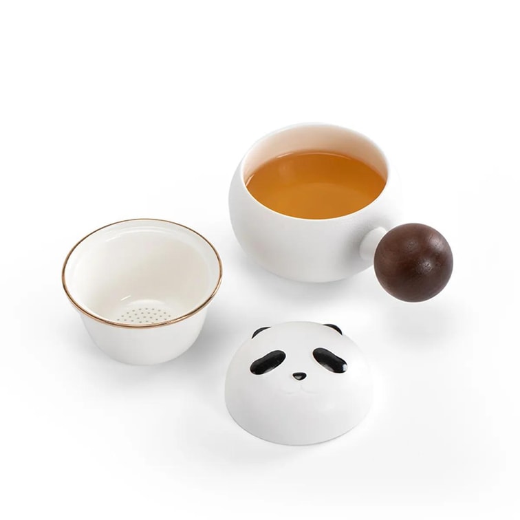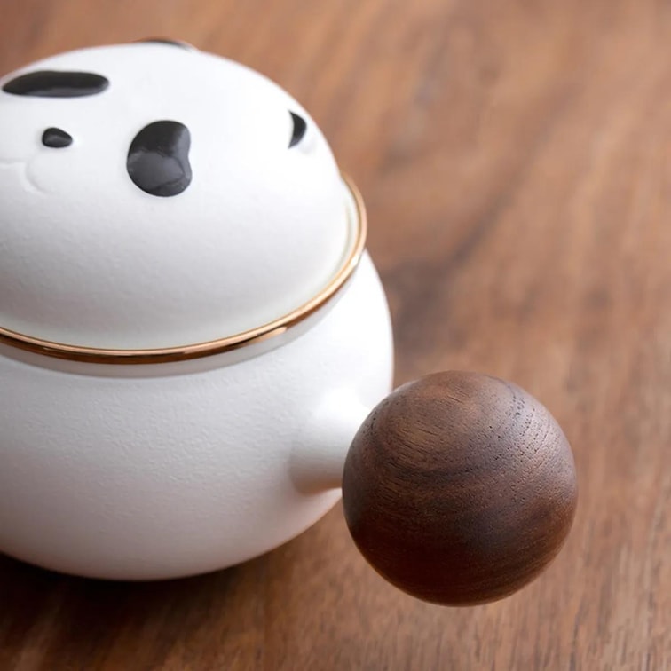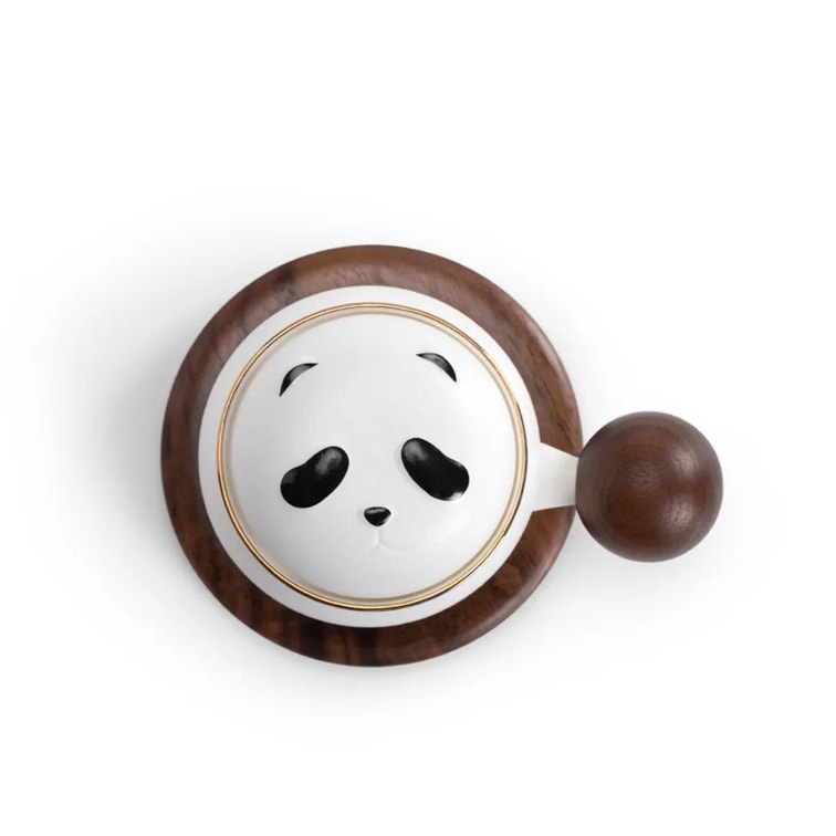 세라믹 팬더 티컵 & 스푼이 포함된 나무 코스터 6.08 fl oz