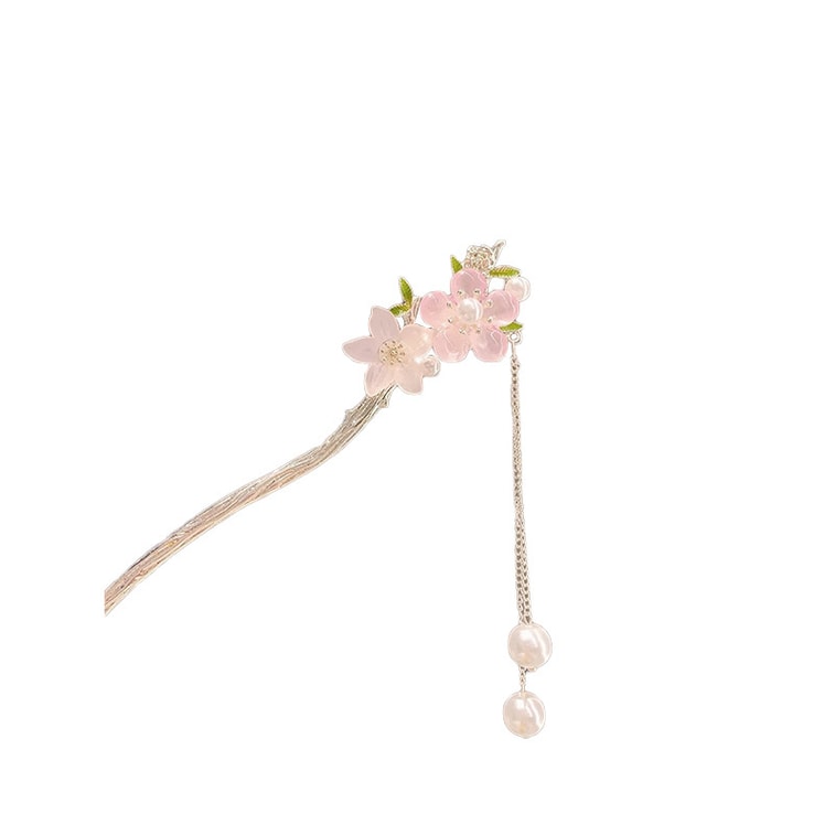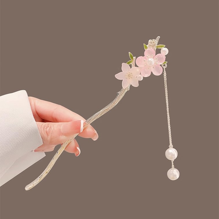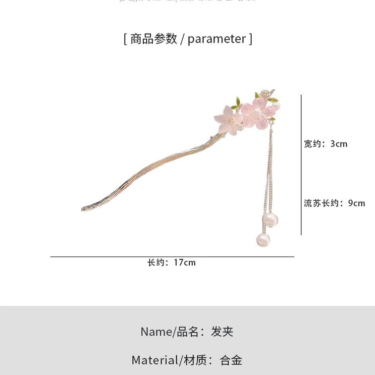 [중국 직배송] FOXTAIL 중국식 신상 핑크 복숭아꽃 머리핀, 태슬 머리핀, 치파오 머리핀, 고급 한복 모자 - 핑크 1피스 | * 예상 도착 시간 3~4주