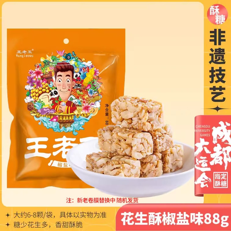 [중국발 다이렉트 메일] 왕라오우 땅콩 크리스피 청두 특산품 무형문화재 장인정신 오리지널맛 88g [청두 유니버시아드 지정 크리스피 캔디]
