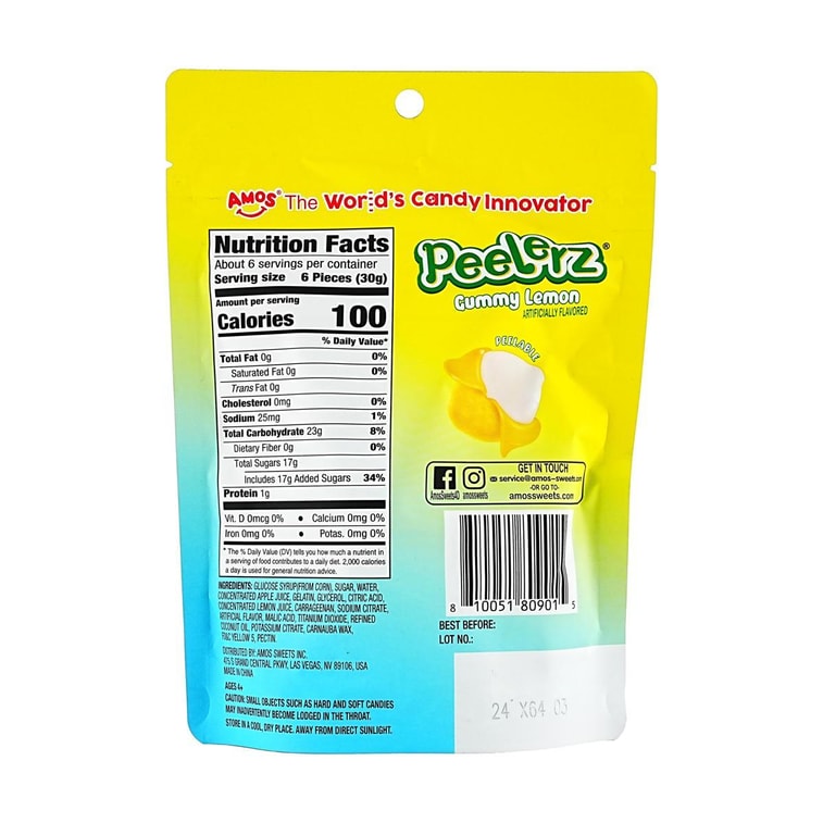 필러즈 필링 구미 캔디, 레몬맛, 6온스【진짜 과일 주스로 만들었습니다】