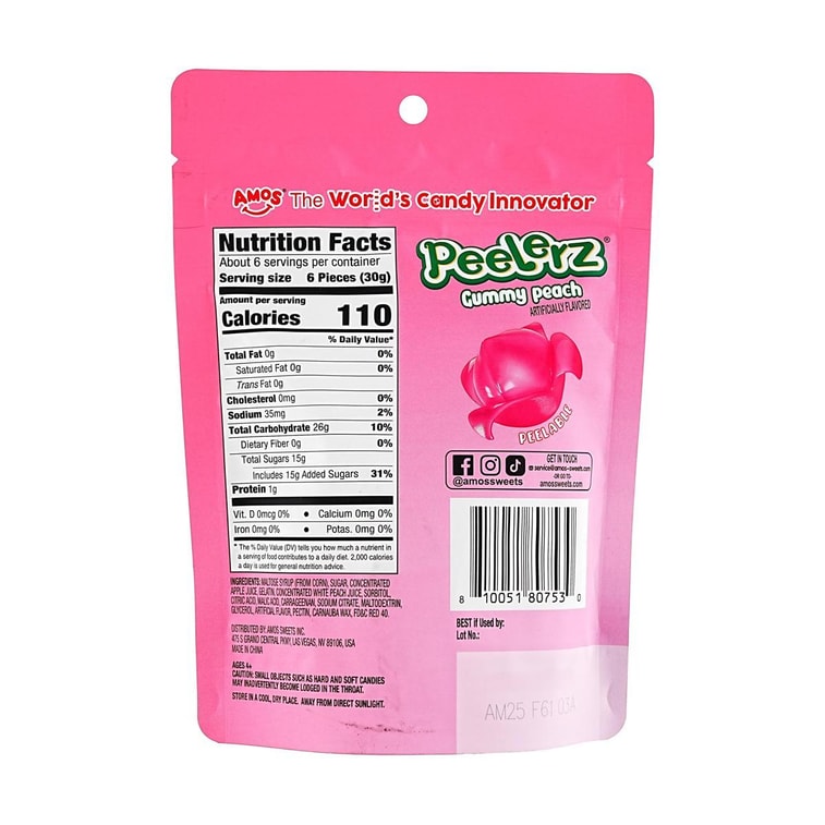 필러즈 필링 구미 캔디, 백도맛, 6oz(170g)【진짜 과일 주스로 만들었습니다】
