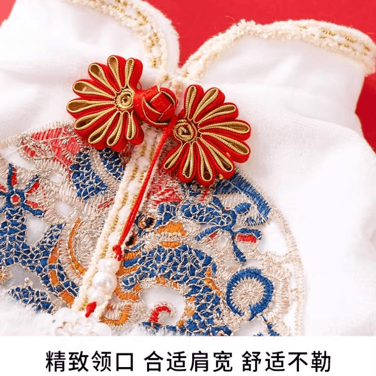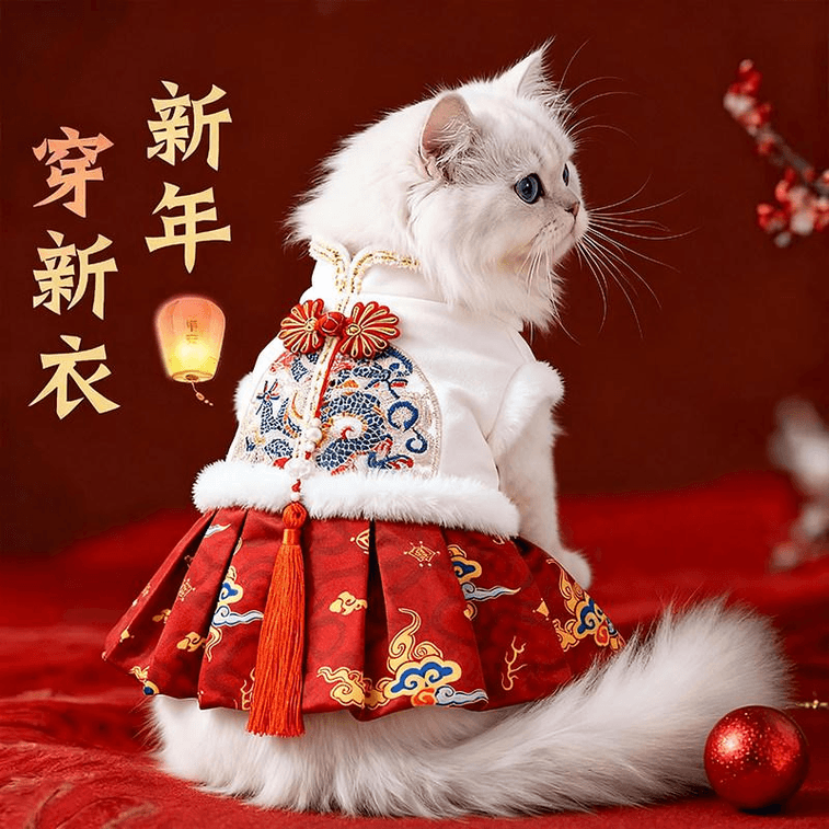 [중국 직배송] 펫타임 애완동물 의류 가을/겨울 따뜻한 새해 고양이/강아지 공주 드레스, 사이즈 M (5-7파운드) * 1개