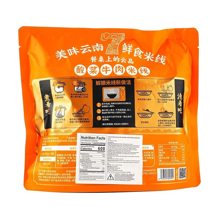 윈난 소고기맛 쌀국수 (절인 야채국 포함), 300g【윈난 특선 요리】