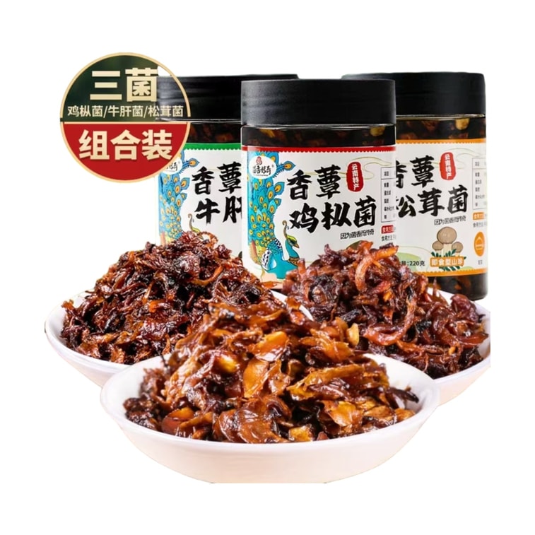 [중국 직송] 버섯전설: 산보 3종 버섯 조합: 알피니아 아르보레센스, 포르치니, 송이버섯 (220g x 3병)