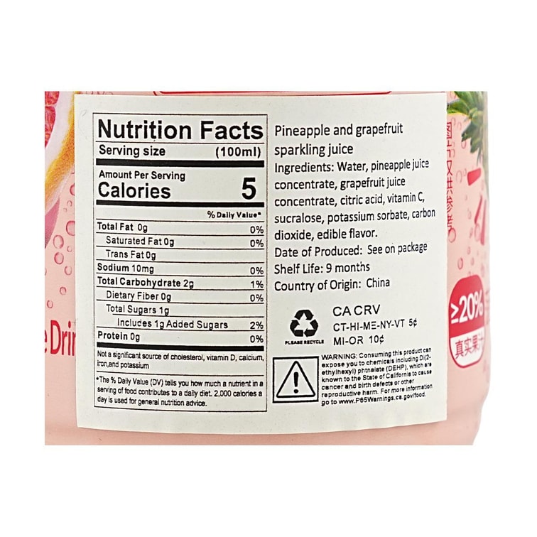 파인애플 자몽 스파클링 주스, 13.53 fl oz *6【6팩】