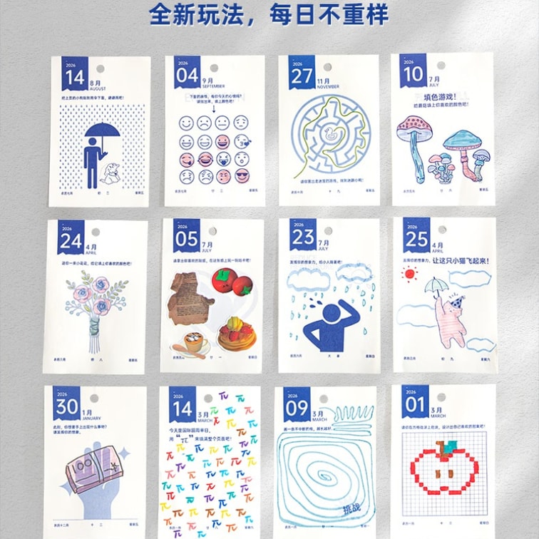 [중국 직송] 청허지 장난기 넘치는 달력 2026 데스크탑 재미와 스트레스 해소 장식, 영감과 치유 데스크 달력, 17*6*11cm*1개