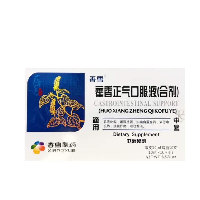 Xiangxue 샹쉐 제약의 활향정기 경구액은 두통, 설사, 일사병, 감기에 효과적입니다. 모든 가정에 필수품입니다. 10ml 10병으로 구성된 10팩입니다. | Yami