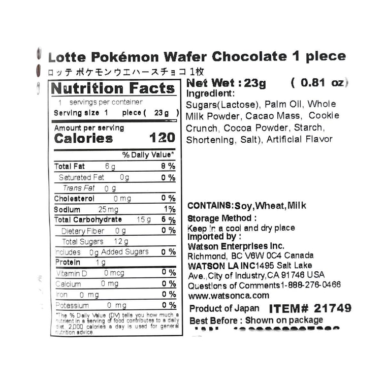 포켓몬 초콜릿 웨이퍼, 0.81oz *5【5팩】
