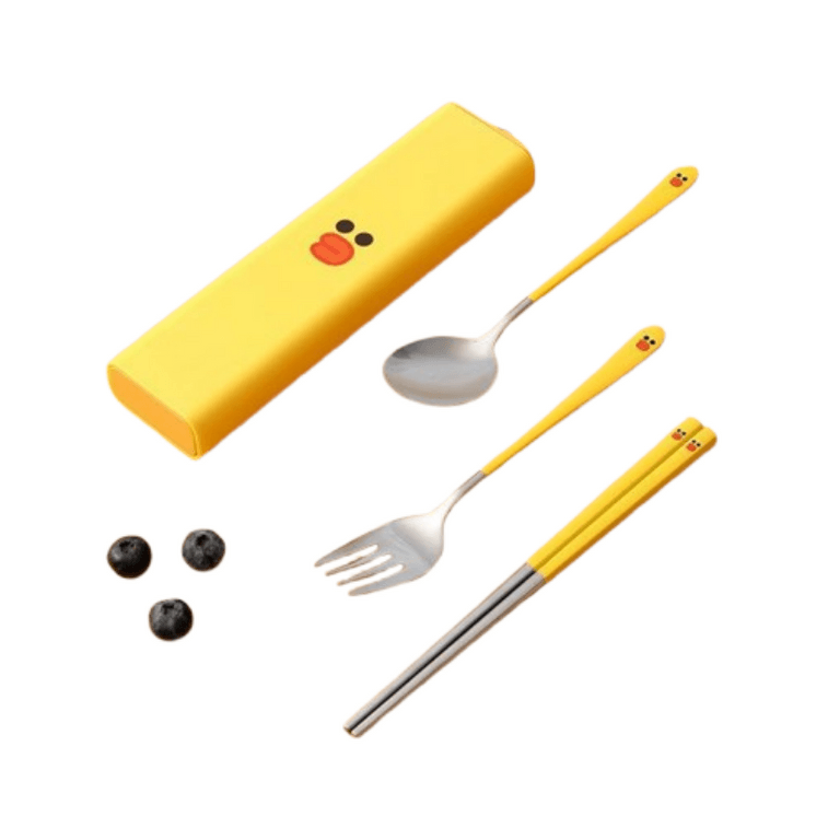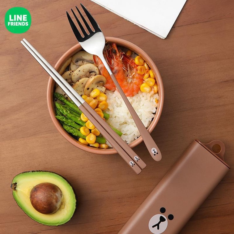 [일본 직배송] 일본 LINE FRIENDS 휴대용 젓가락·스푼 3종 세트 스테인리스 경량 수납함 SALLY 모델