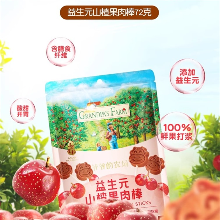 [중국에서 직접 우편] Grandpa's Farm 프리바이오틱 호손 막대 사탕 아기 간식 어린이 과일 바 흰 설탕 없음 충치 걱정 없음 72g/가방