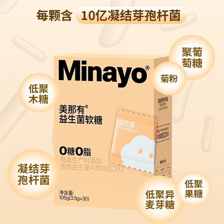 [중국 직배송] 미국 미나 프로바이오틱스 젤리 - 성인, 어린이 및 위장 건강 - 5가지 주요 프리바이오틱스, 생균, 30개 젤리/박스