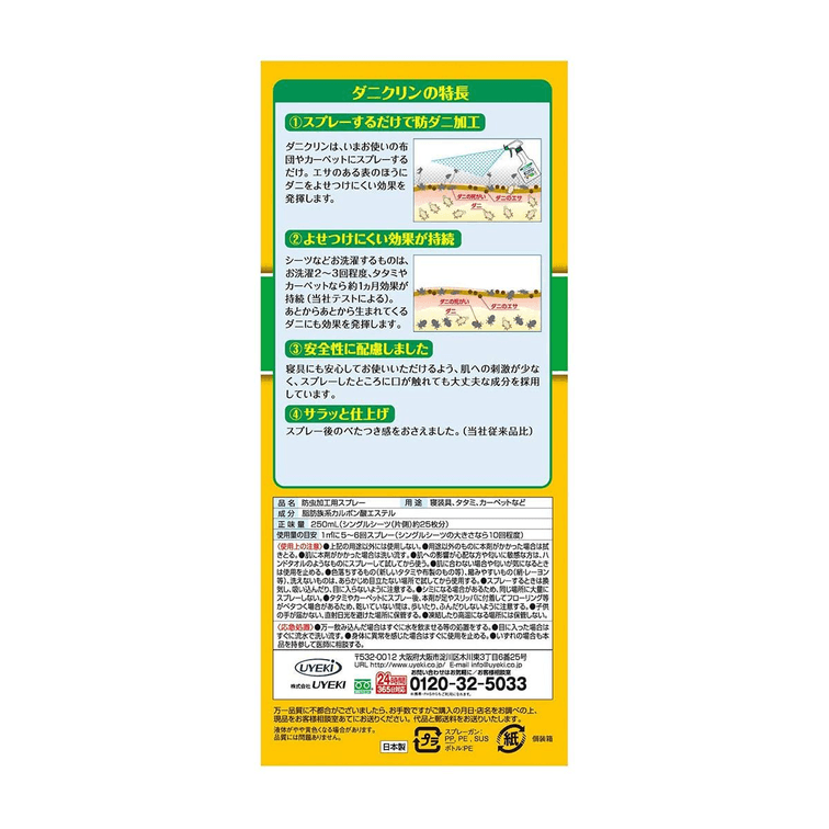 [일본발 다이렉트 메일] UYEKI 프로페셔널 진드기 제거 스프레이 250ml 진드기 제거 무향료