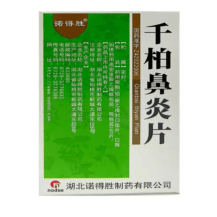 중국 직송: 비염 및 부비동염 완화를 위한 노르덱스 첸바이 비염 정제(병당 100정)