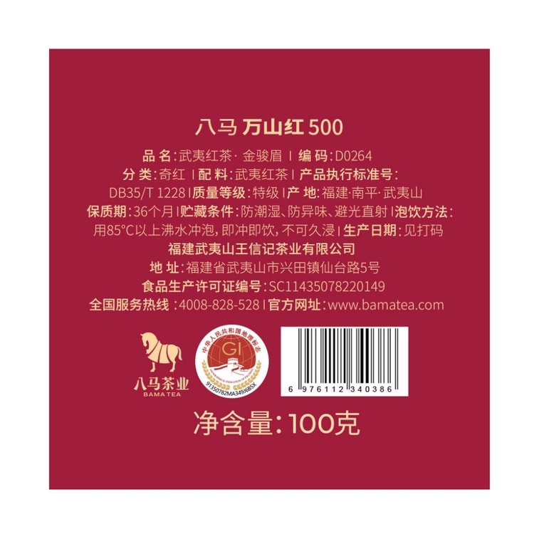 [중국 직송] 바마차공업 완산홍 프리미엄 진준메이(홍차) 100g