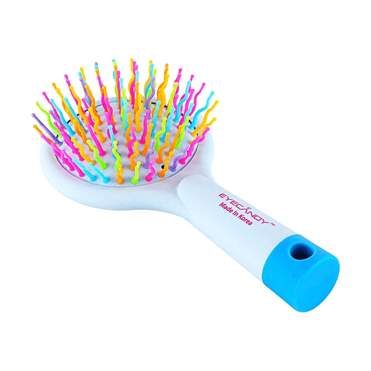 ["특허받은 무지개 S자형 곡선 빗 디자인은 모발 마찰을 줄여 엉킨 머리를 빠르게 풀어주고 모발 큐티클을 보호합니다 . 독특한 물결 모양 빗살은 모발 사이사이에 공기 순환을 촉진하여 드라이어 없이도 자연스러운 볼륨감을 연출합니다 . 고탄성 쿠션 구조는 빗질 시 발생하는 압력을 완화하고 부드러운 마사지를 통해 두피 혈액 순환을 촉진하여 두피 스트레스를 해소합니다 . 정전기 방지 소재는 빗질 중 잔머리를 줄여 모발을 오랫동안 부드럽게 유지하고 건조함과 곱슬거림을 방지합니다. 뒷면에 고화질 거울이 내장되어 ",", 산뜻한 하늘색 외관이 돋보입니다. 중간 사이즈로 휴대하기 편리하며 실용성과 스타일을 모두 갖췄습니다. "," 빗살은 두피에 자극을 주지 않아 모발 손상과 탈모를 현저히 줄여주며, 모든 모발 타입에 적합한 데일리 스타일링 제품입니다."]["Patented S-Wave rainbow bristles glide through knots, reducing friction to protect cuticles for ultimate smoothness.","Unique wavy pins add instant volume and airiness, achieving a natural, salon-like bounce without a blow dryer.","High-elasticity air cushion provides a gentle scalp massage, stimulating blood flow and relieving head pressure.","Anti-static material eliminates flyaways and frizz, ensuring long-lasting sleekness for dry or unruly hair.","Integrated HD makeup mirror with a stylish sky-blue design; portable size perfect for travel and daily styling.","Smooth ball-tipped bristles minimize hair breakage and hair loss, offering a gentle touch for all hair textures."]