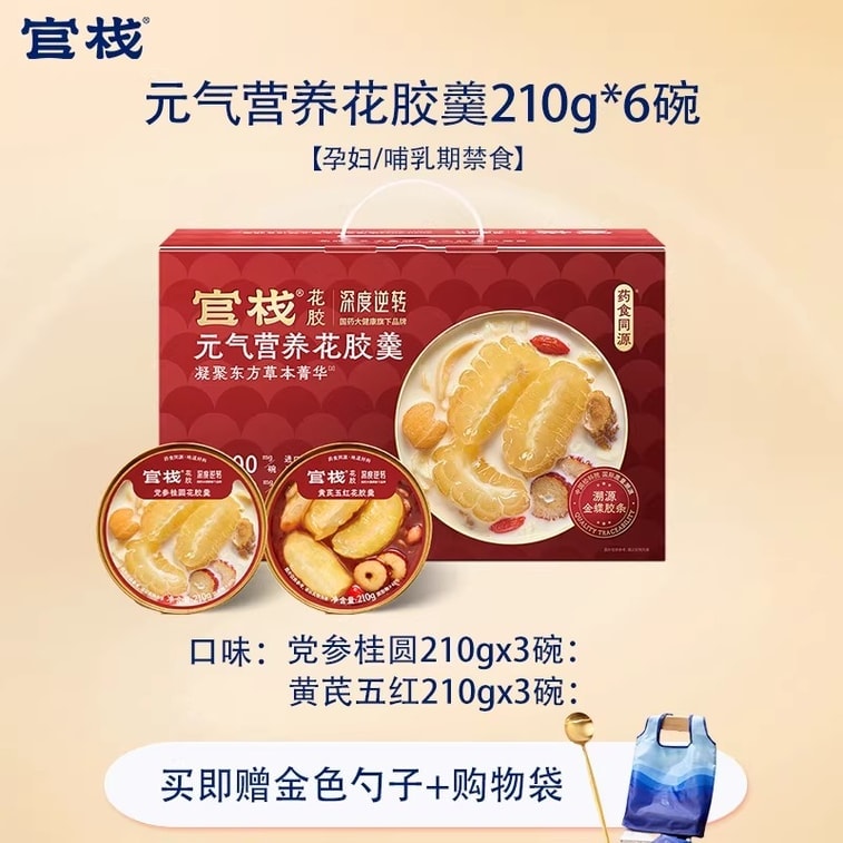 [중국 직배송] 관잔 [신년 선물] 즉석 생선 부레 신년 생선 부레 선물 세트, 임산부 및 산후 여성을 위한 콜라겐 토닉, 제비집 죽, 활력과 영양을 공급하는 생선 부레 수프 210g*6그릇