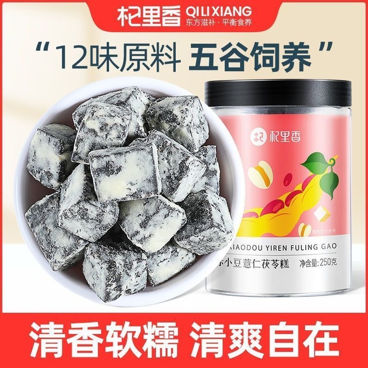 구기자 향 팥, 율무, 복령 케이크; 율무, 검은깨, 귤껍질, 뽕나무 열매가 함유된 영양 가득하고 습기 제거 및 열을 내리는 통곡물 스낵. 250g