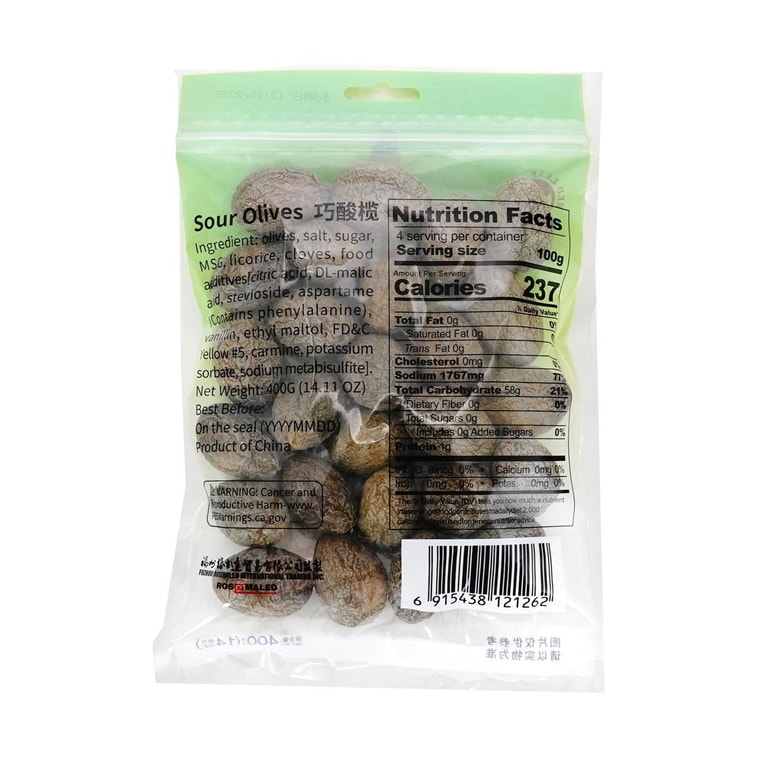 새콤달콤한 올리브, 400g (14.1oz)【푸젠 특산품】
