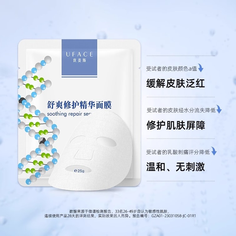 [중국 직배송] UFISE 수딩 & 리페어링 에센스 마스크: 피부에 수분과 영양을 공급하고, 미세 바늘 시술 및 수분 공급 후 피부 장벽을 형성하며, 붉은 기미를 즉각적으로 완화해 민감하고 손상된 피부를 위한 구세주입니다. 5개 마스크/박스