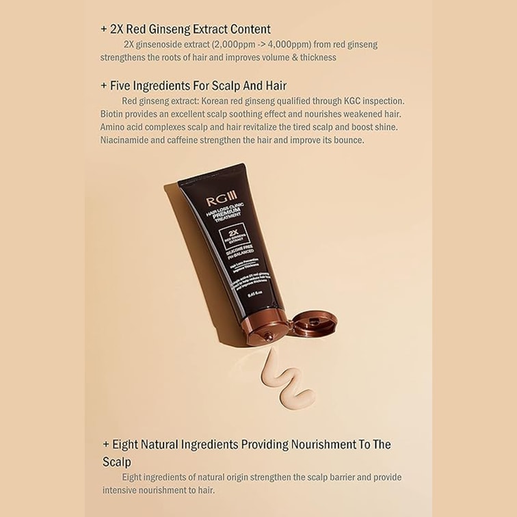 KGC인삼공사의 280가지 품질 테스트를 통과한 6년근 국산 고품질 홍삼만을 사용하여 모발을 뿌리부터 튼튼하게 하여 굵고 튼튼하게 만들어 줍니다.